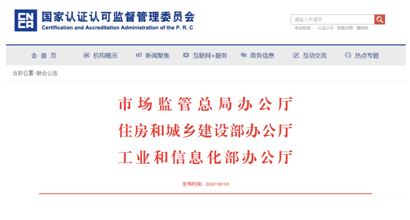 據(jù)認監(jiān)委網站消息,近日,市場監(jiān)管總局 住房和城鄉(xiāng)建設部 工業(yè)和信息化部聯(lián)合發(fā)布關于加快推進綠色建材產品認證及生產應用的通知,詳情如下: