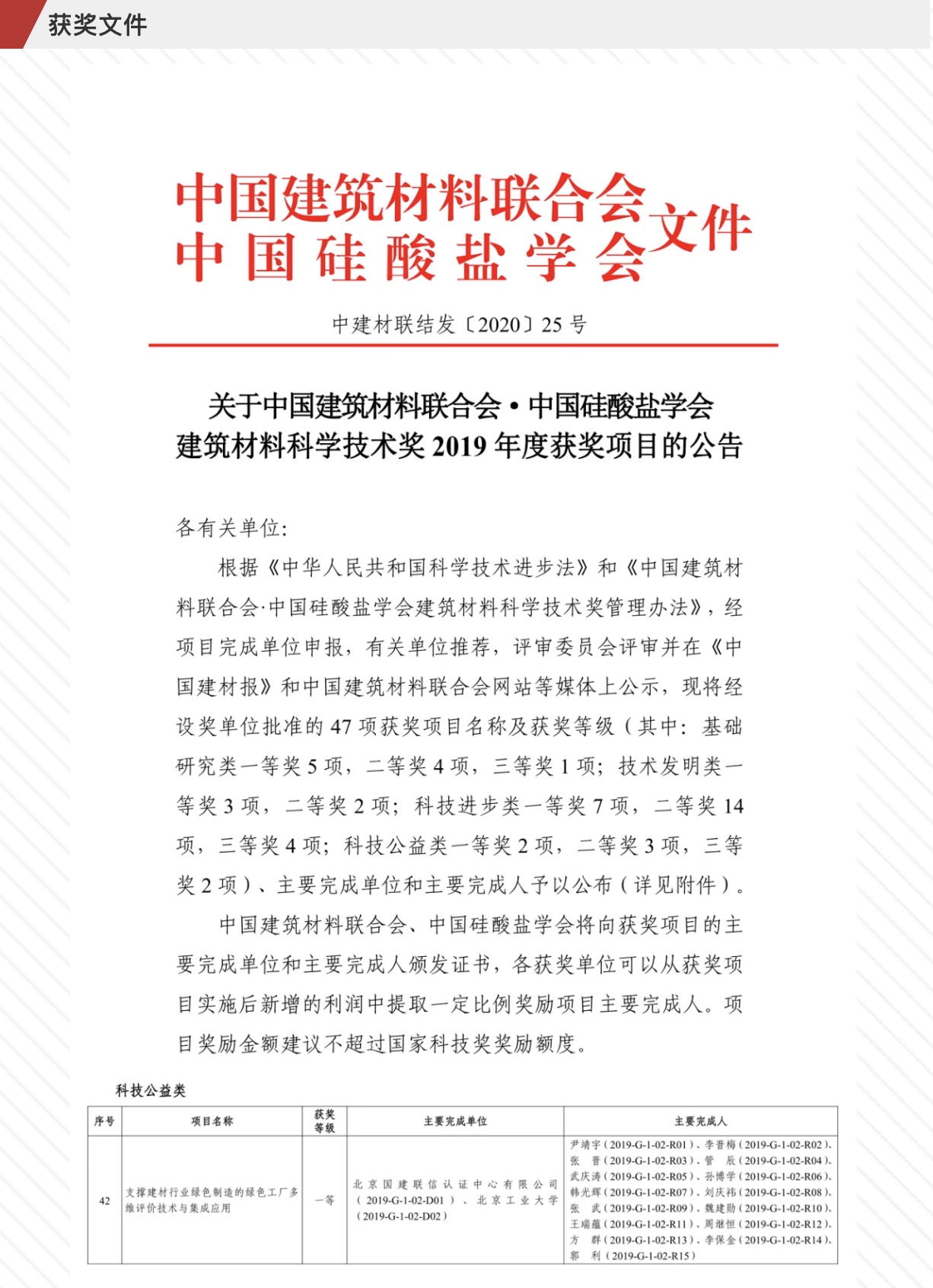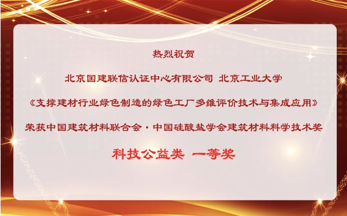 國建認(rèn)證喜獲建筑材料科學(xué)技術(shù)獎科技公益類一等獎