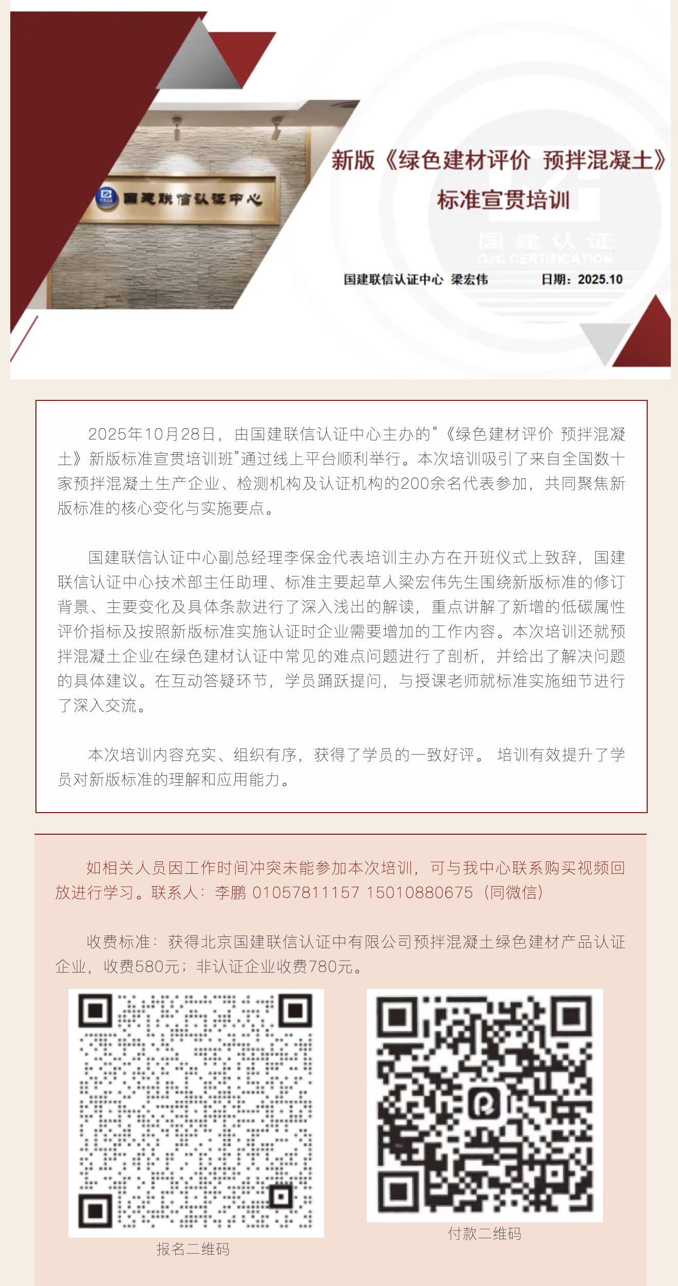 聚焦綠色標準,引領行業(yè)升級 | 《綠色建材評價 預拌混凝土》新版標準宣貫培訓班成功舉辦