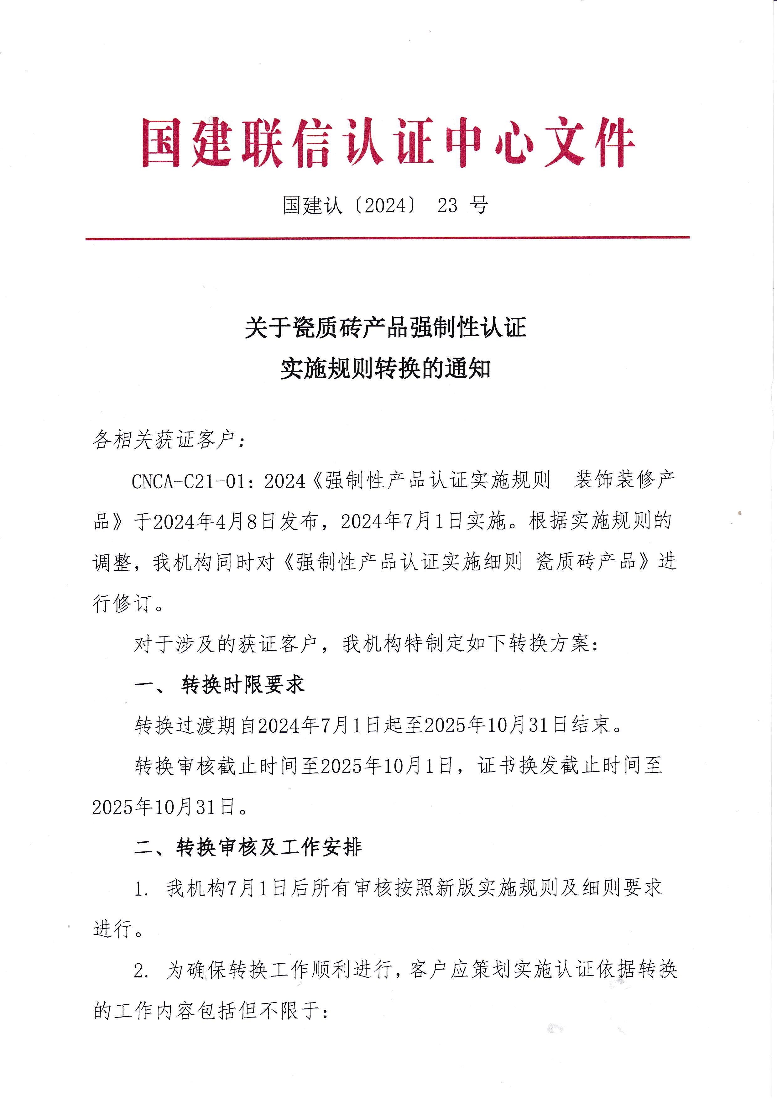 關(guān)于瓷質(zhì)磚產(chǎn)品強制性認(rèn)證實施規(guī)則轉(zhuǎn)換的通知
